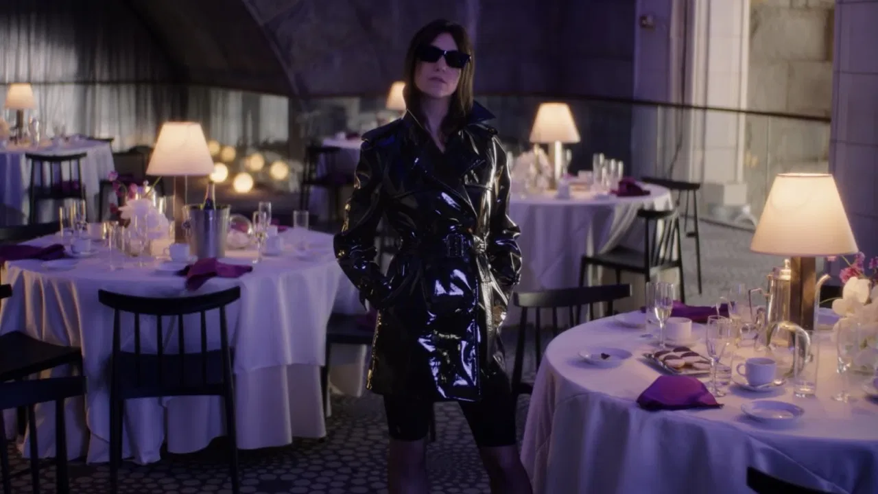 A lone waiter observes a group of party guests as they search for one another throughout a strange, cavernous venue.